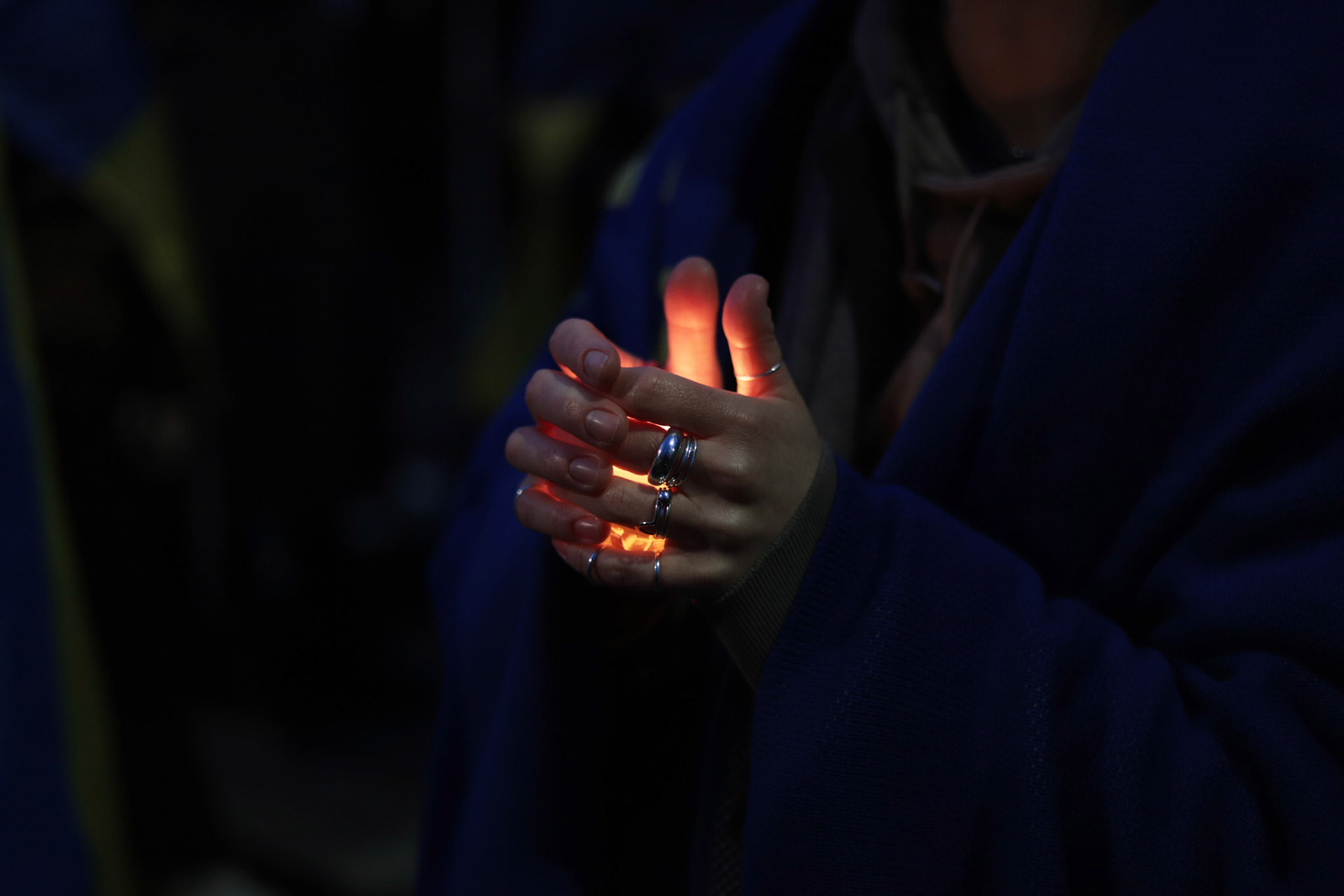 People watch the Silent Procession and Holy Sepulchre of the Recumbent Christ on Good Friday from their houses in Hondarribia, Gipuzkoa, Basque Country, Spain, April 08, 2023.