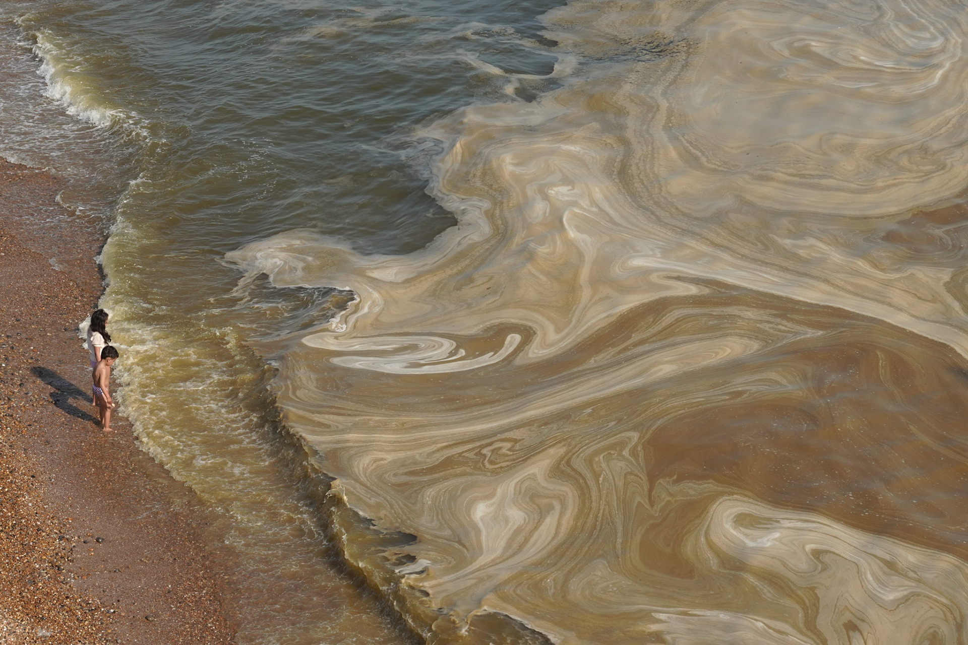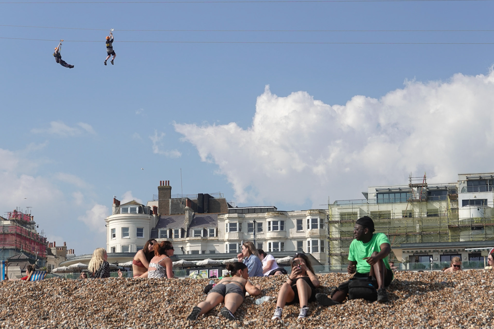 Kids play with bubbles at the entrance of the Tate Modern Museum as Saint Paul's Cathedral is seen across the Thames River in London, Britain, March 26, 2023.
